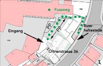Zu Eingang und Parkplätzen